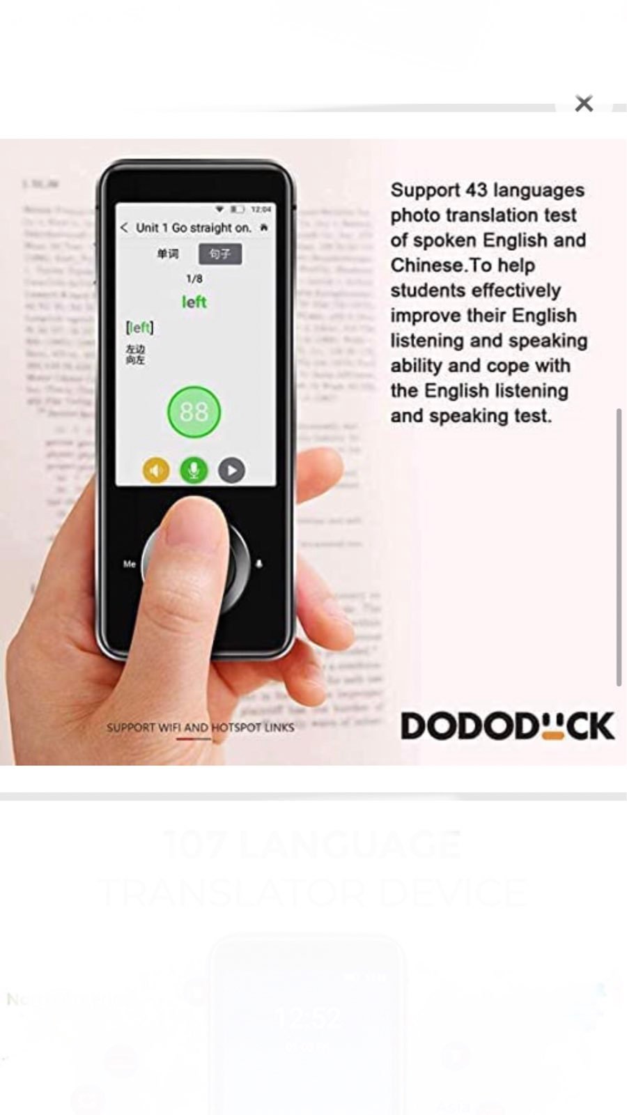 DoDoDuck 1 Language Translator Device, Best Offline 2 Way Translation in 12 Languages, 109 Online, Works with No Connectivity, Watch Video from OS-Reviews (32 GB)